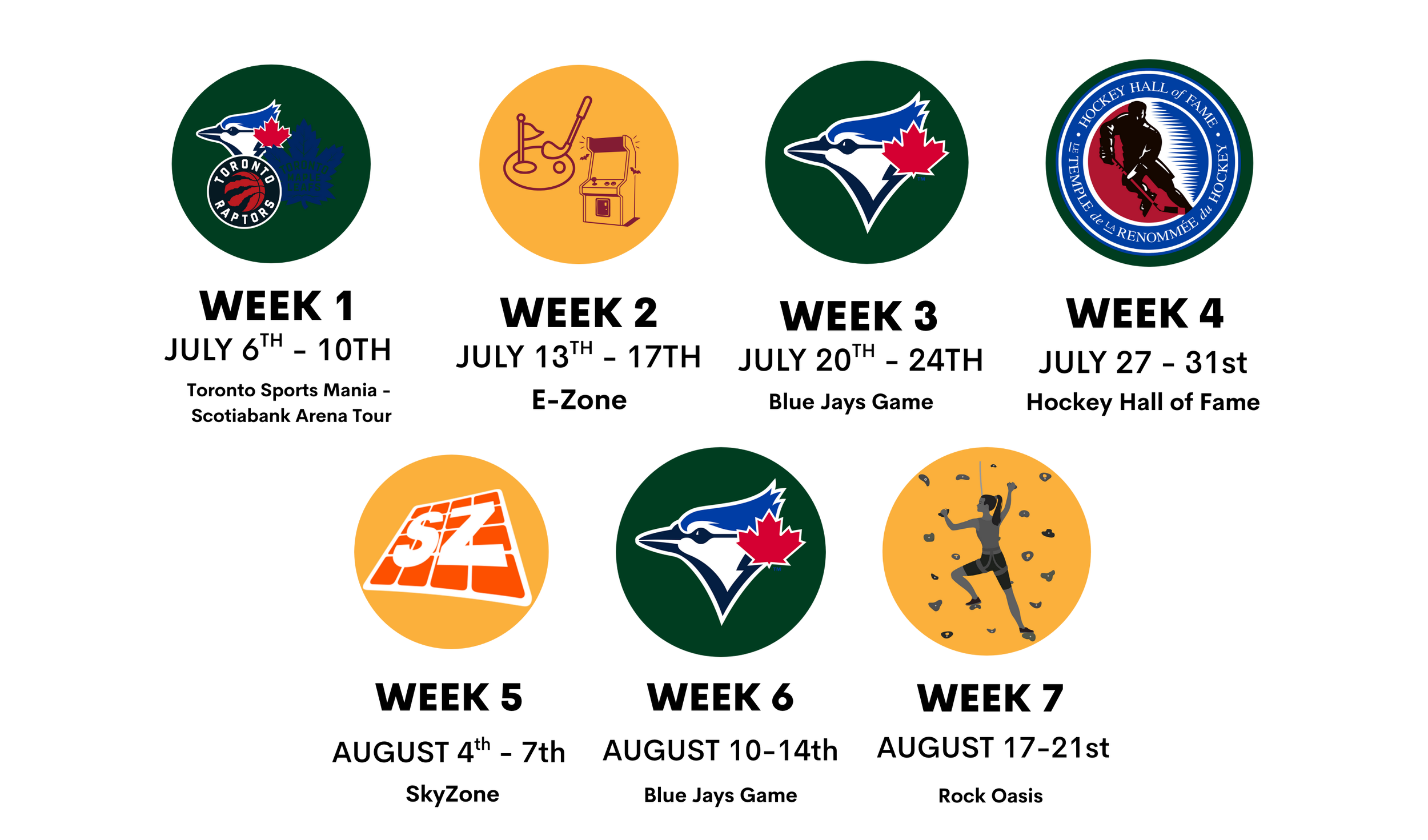 • Examples of weekly field trips include: Blue Jays Game, Hockey Hall of Fame, SkyZone, Swimming